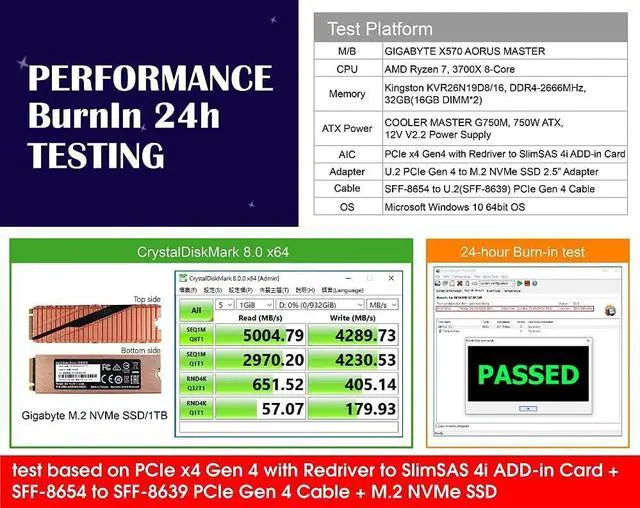 U.2(SFF-8639) interface for easy connection to motherboards and servers