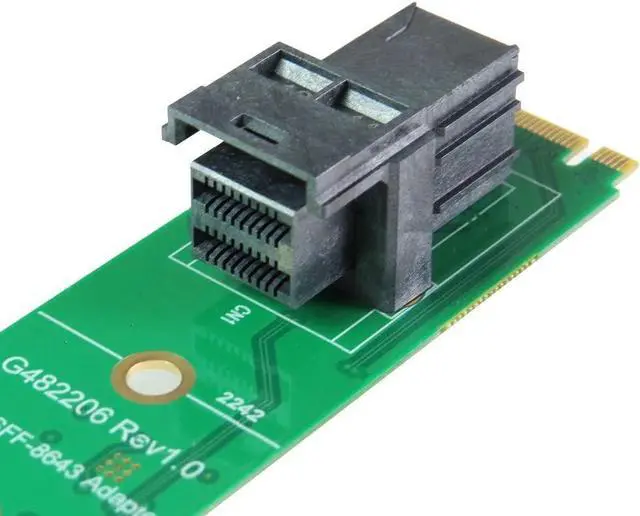 The M.2 M-Key Mini SAS HD SFF-8643 Adapter is designed in the M.2 form factor, allowing it to be compact and easily fit into compatible devices.