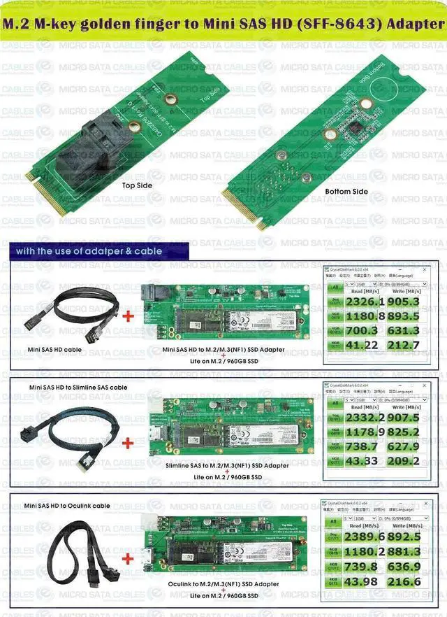 The M.2 M-Key Mini SAS HD SFF-8643 Adapter supports high-speed data transfer rates, allowing for efficient and rapid storage operations.
