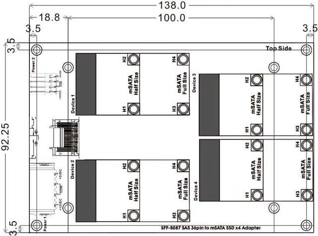 The Mini SAS SFF-8087 to mSATA x 4 converter with a 3.5-inch frame is the perfect solution for expanding your storage capabilities. Designed to connect four mSATA drives to a single Mini SAS SFF-8087 port, this converter ensures a seamless and efficient performance for various applications, from home setups to professional environments. Key Features: 1. High Compatibility: This converter is compatible with all Mini SAS SFF-8087 ports, making it versatile and easy to integrate into existing systems. It supports four mSATA drives, providing ample storage expansion. 2. Robust Performance: The Mini SAS to 4x mSATA converter offers reliable and high-speed data transfer rates, ensuring quick access and smooth operation of your storage devices. 3. Efficient Design: With its 3.5-inch frame, this converter fits perfectly into standard drive bays, allowing for easy installation and a clean setup. The compact design ensures that it doesn't take up unnecessary space while providing maximum functionality. 4. Enhanced Storage Solutions: Ideal for RAID configurations and high-capacity storage needs, this converter is perfect for users who require robust and scalable storage solutions. 5. Durability and Reliability: Built with high-quality materials, the Mini SAS SFF-8087 to mSATA x 4 converter is designed for long-term use, providing dependable performance over time. Applications: 1. Home and Office: Expand your storage for personal use, media libraries, and important documents. 2. Professional Environments: Ideal for businesses requiring extensive data storage, such as video editing, graphic design, and data analysis. 3. Gaming Setups: Enhance your gaming experience by adding more storage space for your game collection. Upgrade your storage system with the Mini SAS SFF-8087 to mSATA x 4 converter with a 3.5-inch frame and enjoy the benefits of increased storage capacity, reliable performance, and easy installation.