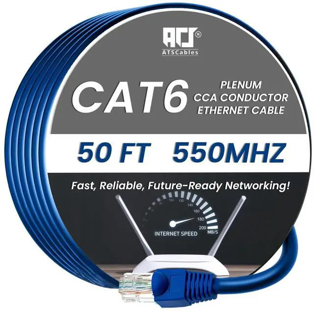 ATS Cables | CAT6 Plenum (CMP) Cable 1000FT | DSX-8000 Network Analyzer Test Passed | 23AWG UTP 4Pair, Solid 550MHz Ethernet Cables 10Gb, Available in 9 Colors (Blue, 50ft)