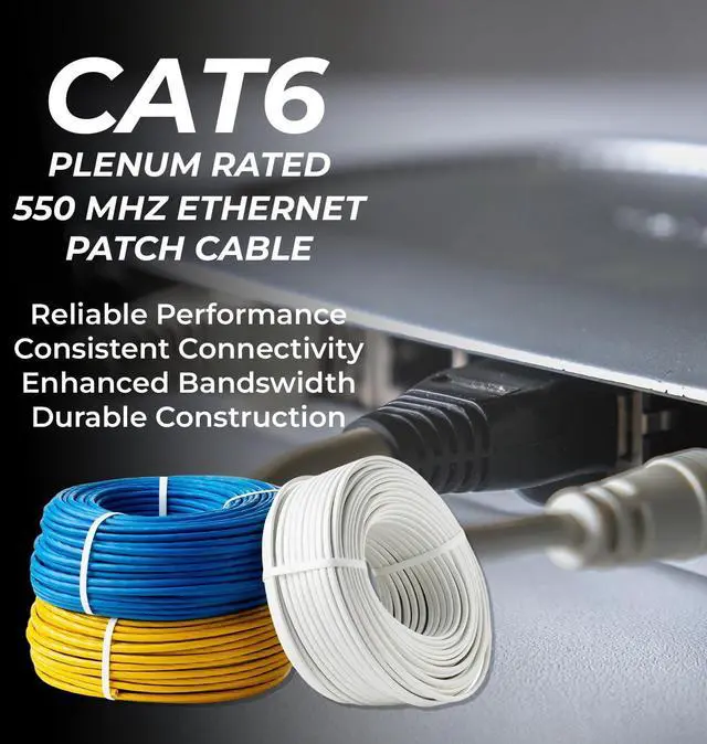 High-Performance Network Cable: Our plenum-rated Cat6 cable features 23 AWG conductors with 4 twisted pairs (8 conductors), ensuring optimal performance for Fast, Gigabit, and 10-Gigabit Ethernet applications. Supports bandwidths up to 550MHz, delivering reliable and high-speed data transmission.