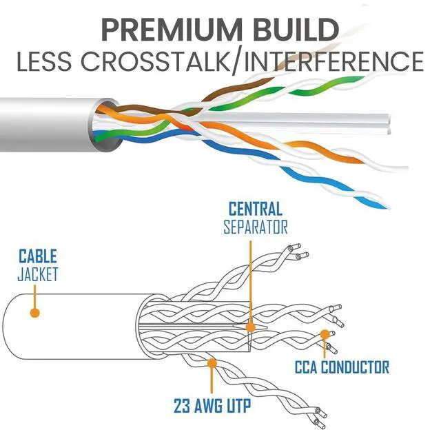 Enhanced Structural Integrity with Center Separator/Spline: The integrated center separator/spline provides additional support, minimizing twists and kinks while effectively separating pairs to reduce crosstalk and enhance signal integrity.