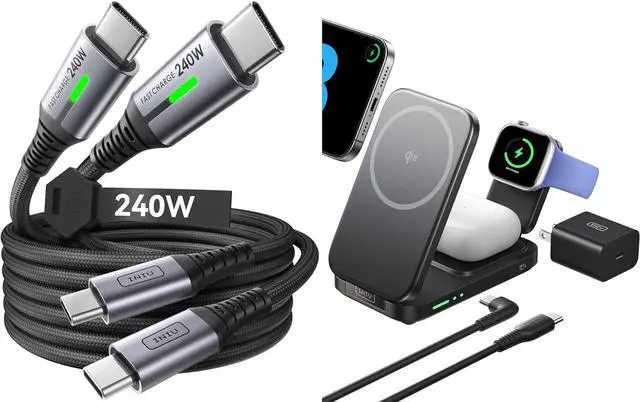 What You Get: INIU 240W USB-C Charging Cable*2, 3-in-1 Qi2 Wireless Charging Station*1