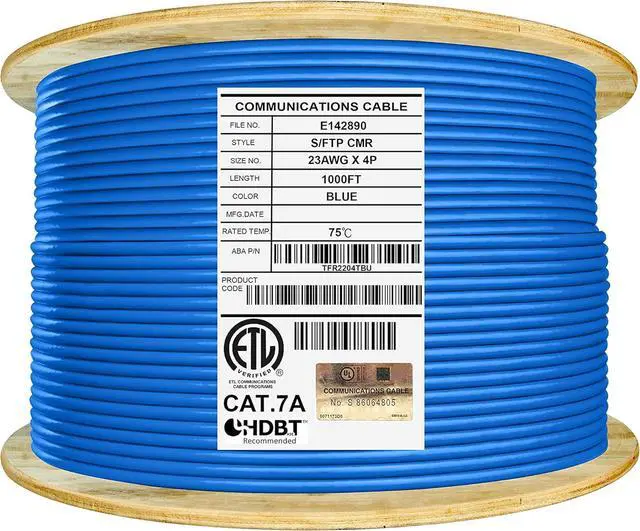 Premium Cat7A | Shielded CMR Riser (S/FTP), 23AWG, Solid Bare Copper. Jacket is flame retardant PVC, giving you extra flame retardant protection. Use for in wall installations, between the floors in non plenum areas and can replace general use (CM rated) ethernet cables. Perfect for high end transmission of digital and analogue for data, video and audio applications.