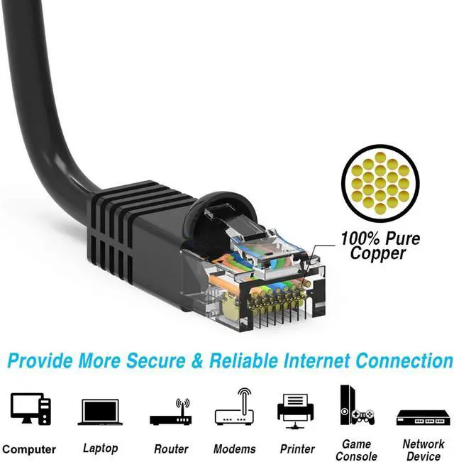 iMBAPrice high Performance Internet cable is Cat6 rated; Our Ethernet cord with 24 AWG copper wire provides universal connectivity for LAN network components such as PCs, computer servers, printers, routers, switch boxes, network media players, NAS, VoIP phones, PoE devices.