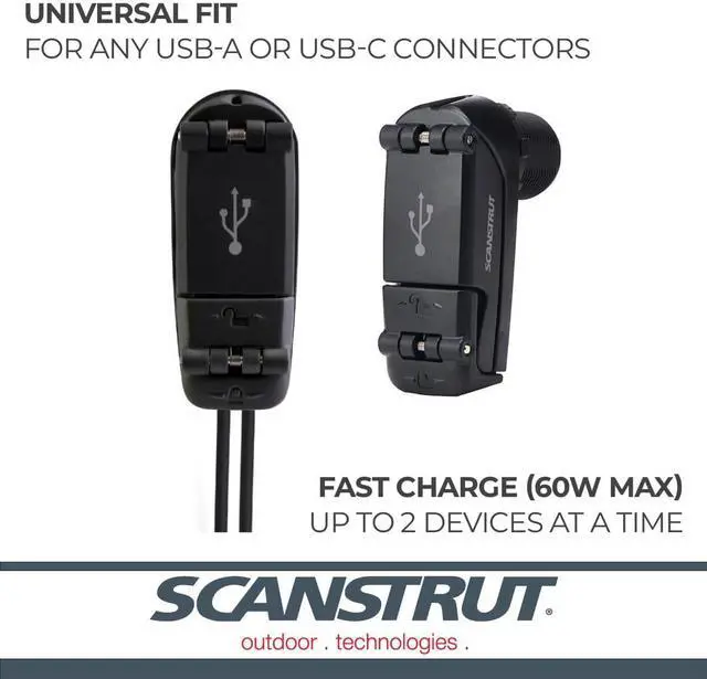 316 Stainless Hinge And Spring Anti-Corrosion Coating On The Circuit Board UV Resistant And IPX6 Waterproof With The Cover Closed Universal Fit For Any USB-A Or USB-C Connectors Fast Charge Of 60 Watt Maximum Up To 2 Devices At A Time