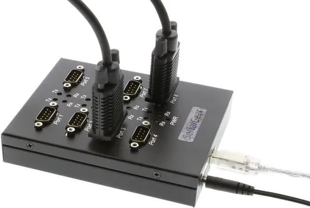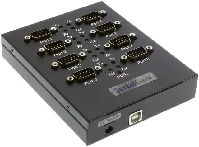 Adds eight RS-232 serial ports by connecting to USB port