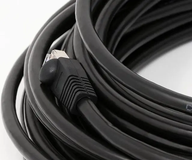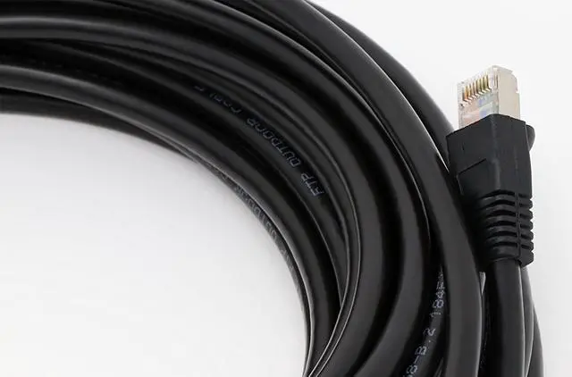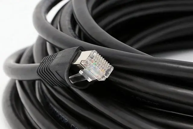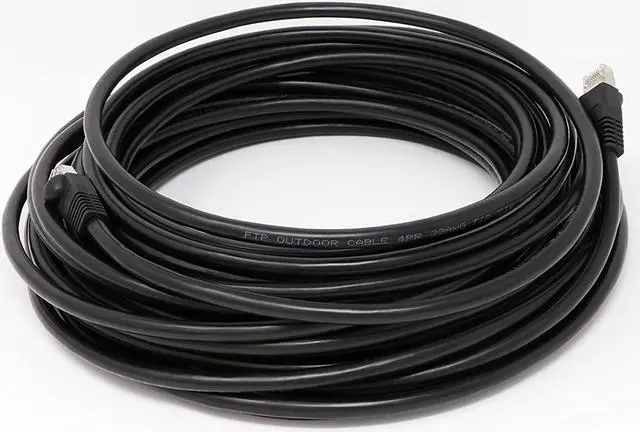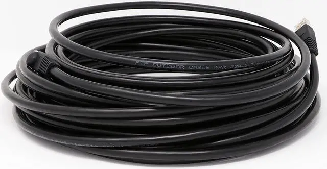 Black, Shielded Cable Can be buried directly in the ground Waterproof. weatherproof, UV rated, LSZH Cat6a Solid Copper Cable rated for 750MHz and 10Gb use. Shielded connectors installed with boots