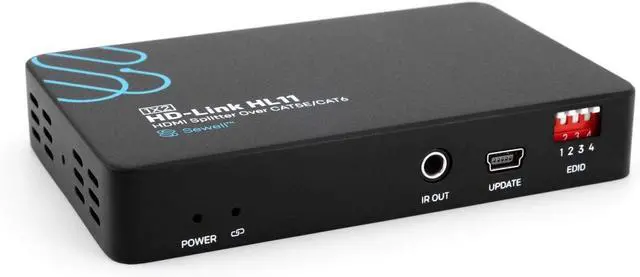 Extend HDMI and IR signals up to 160 ft. to 2 displays over Cat5e or Cat6 cables