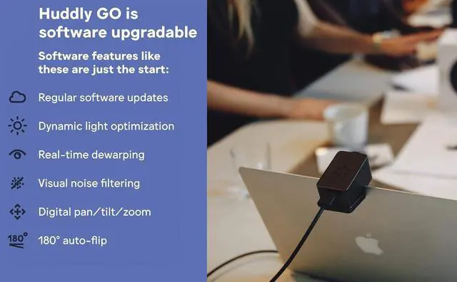 Software upgradable via the Huddly Vision software platform - The Huddly GO's capabilities are improved through regular releases of cutting-edge new features to improve your collaboration experience