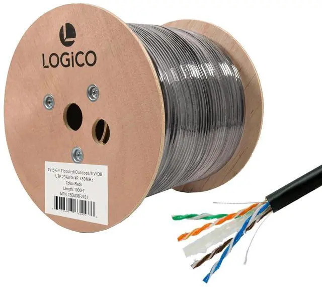 High speed Cat6 Outdoor Ethernet cable UV resistant/Direct burial Gel filled 23AWG Solid Bare Copper