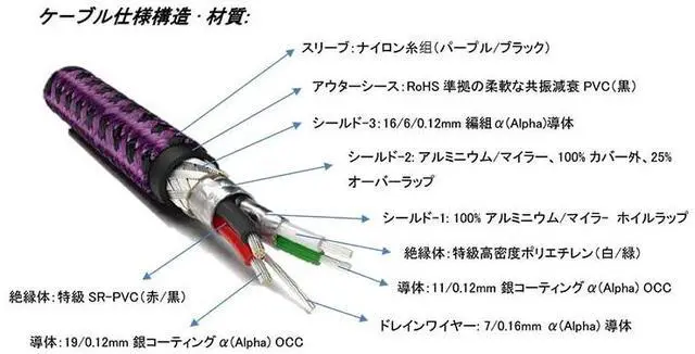 SPECIFICATIONS Main conductor: Silver-plated (Alpha) OCC Conductors Main Insulation: Special-grade high-density polyethylene 3-layer shield construction for improved noise insulation Connectors: Furutech-engineered 24k gold-plated USB series Connectors The best damping and insulation materials for improved frequency extension and tonal balance