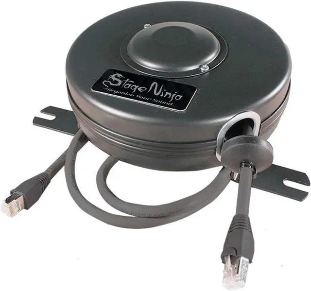 Premium cat5e cable with RJ45 connectors. Black, military grade steel housing. Wall mounting bracket is standard with ceiling mounting bracket (VMB-6-S) available. Reel pulls out and locks to desired length. One pull and reel retracts instantly.
