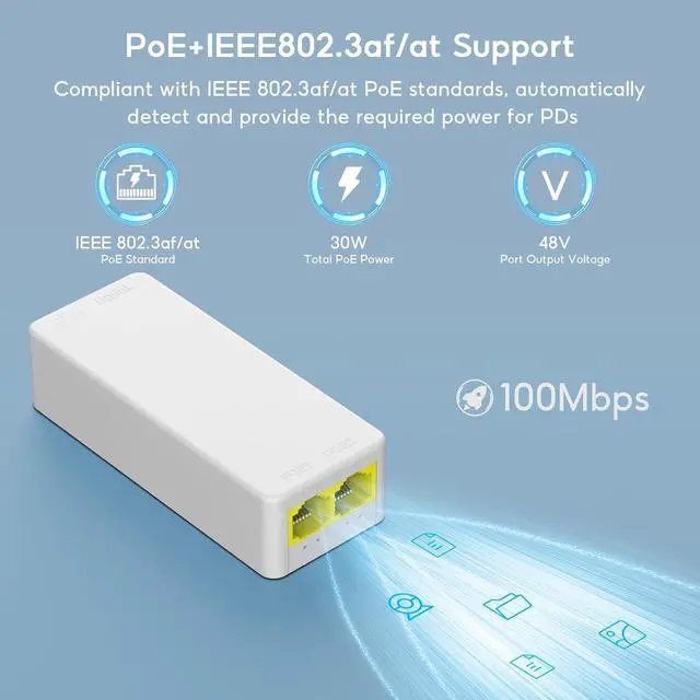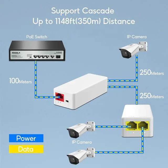 For Surveillance SystemThe PoE Extender is easy to setup with no software installation or configuration required. Perfect for Security Camera CCTV Surveillance, greatly extending the network signal transmission as well as power supplying distance.