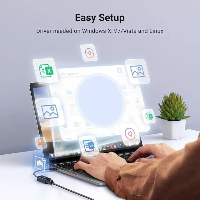 Easy Setup: The ethernet adapter for laptop is plug and play on Windows 11/10/ 8.1 /8, macOS, and Chrome OS, no need to install driver. It requires installing the driver on Windows XP/7/Vista and Linux, which you can easily install with our instructions