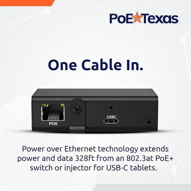Who Is It Designed For? This PoE to USB power adapter is ideal for small businesses, IT professionals, and installers needing reliable power and wired data for tablets at retail checkout, visitor kiosks, or conference rooms. Backed by 1-year manufacturer' s warranty and U. S. support at 512-479-0317.