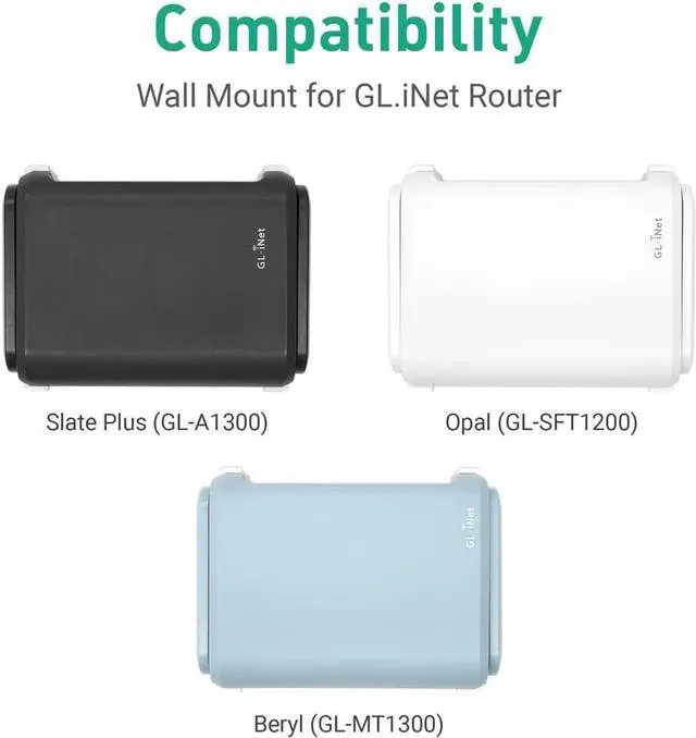 DESIGNED TO PERFECTLY FIT YOUR GL. INET ROUTERThis wall mount is specially compatible with GL-A1300 (Slate Plus), GL-SFT1200 (OPAL), GL-MT1300 (BERYL)