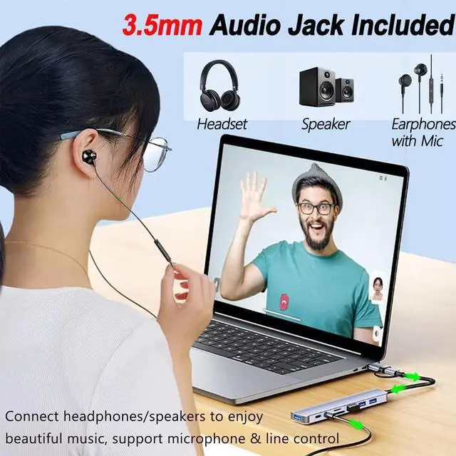 Excellent Services: USB Type-C expansion dock hub is perfect for on-the-go use, comes with 18 months warranty. If the usb c hub with audio jack you received has any kind of problem, please contact us immediately and you can have your mo-ne-y back, no losses for you!