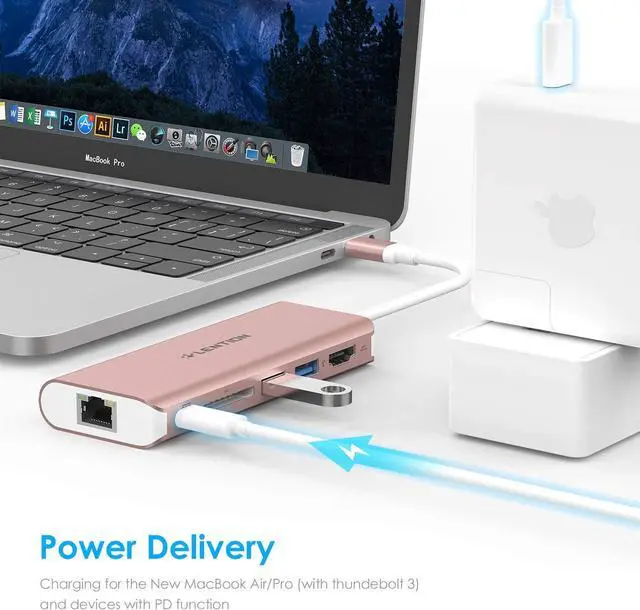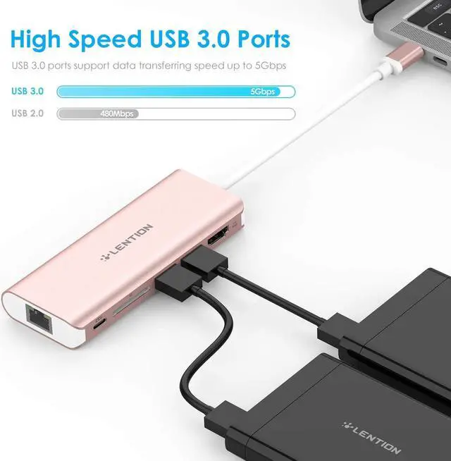 Fast Charging & Ethernet: The type-c charging port can pass through up to 60w power to USB-C Power Delivery devices. The gigabit LAN Adapter offers full 10/100/1000 Mbps ultra-stable wired network connection