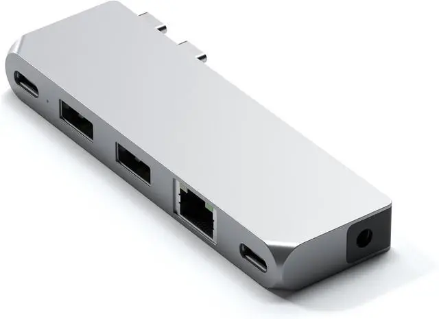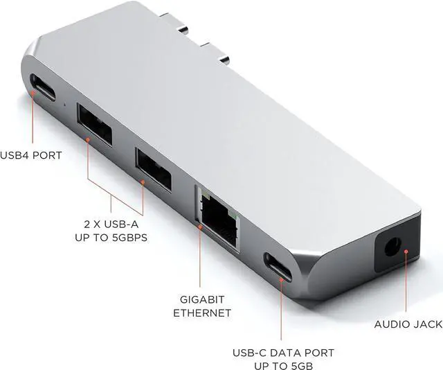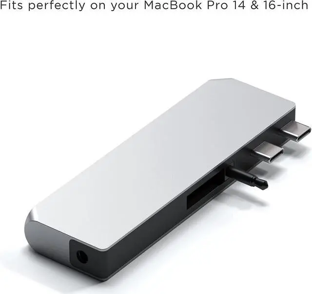 Sleek Design for Portability - Experience premium craftsmanship with the compact and stylish Pro Hub, available in silver and space grey. Included is an audio jack port clip designed to seamlessly integrate with your MacBook Pro 14 & 16-inch, ensuring a secure fit for on-the-go convenience.