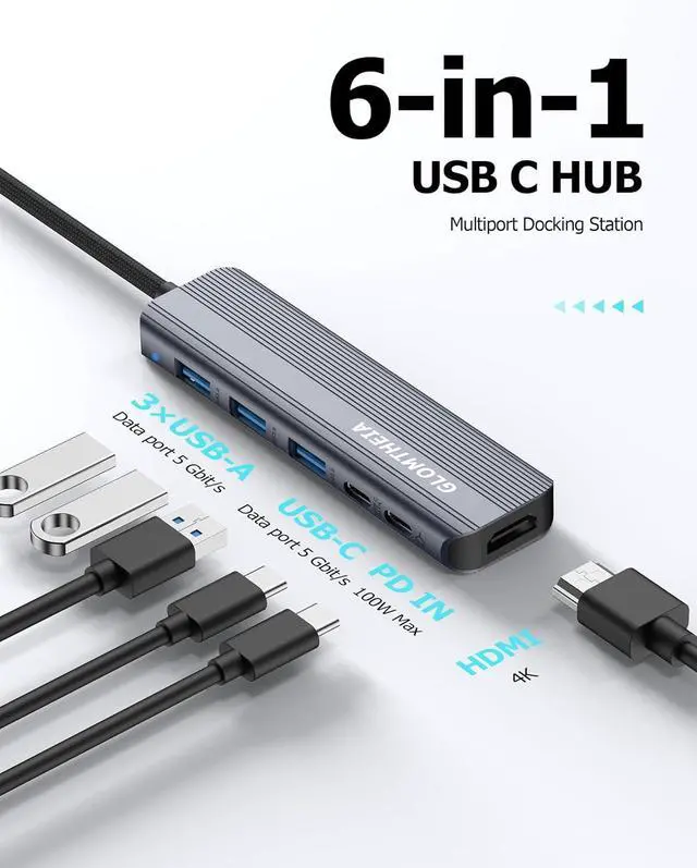 CONNECTIVITY: Equipped with a 5 Gbps USB-C data port, three 5 Gbps USB-A ports, a 4K@30Hz HDMI port, and a 100W PD-IN port.