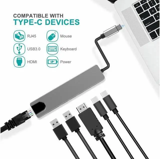 USB Type C Hub Adapter Dock with 4K HDMI PD RJ45 Ethernet Lan Charge for MacBook