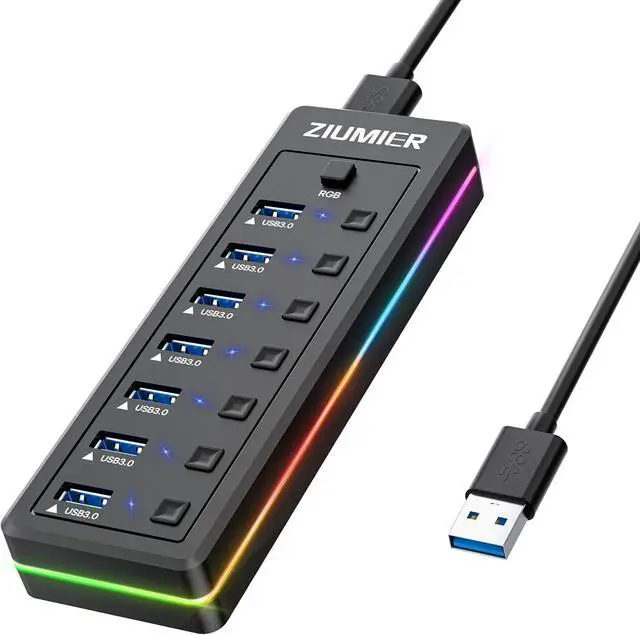 [ 3.3 ft Cables] Ziumier 7 ports USB hub comes with a 100cm ( 3.3 ft) USB cable and enough length to let you arrange your cables anywhere. The Usb hub is a good ideal data backup and transmission solution for home and office
