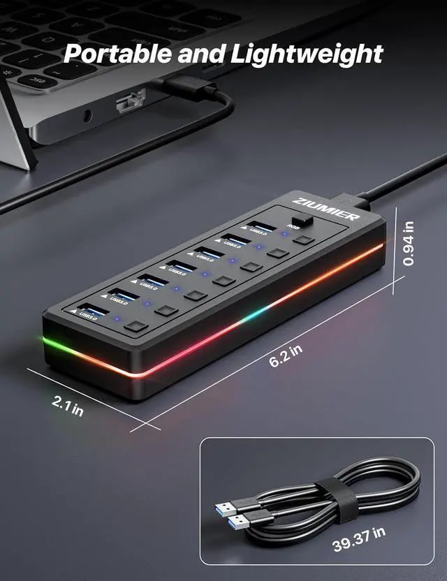 [Wide Compatibility] ZIUMIER USB hub is engineered to work effortlessly with Windows (XP to 11), Mac OS, and Linux. It supports all USB peripherals from 1.0 to 3.0 and requires no drivers, offering true plug-and-play convenience and hot-swapping capability.