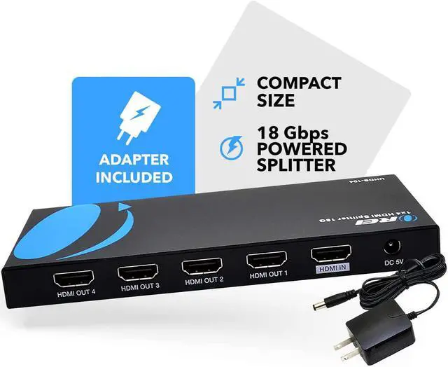 OREI HDMI Splitter with Full Audio Support: Supports Dolby TrueHD, DTS-HD, LPCM & more. Enjoy ultra HD audio and video on all 4 screens, perfect for gaming, home theater, and office setups.