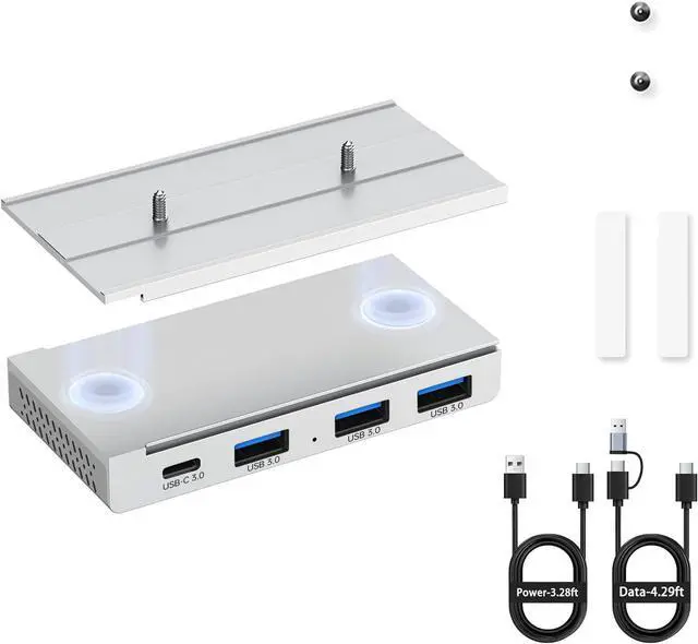 USB Hub: Expand your connectivity with three USB 3.0 ports and one USB-C port. The built-in magnets securely attach the hub to any metal surface, preventing slips or shifts during use
