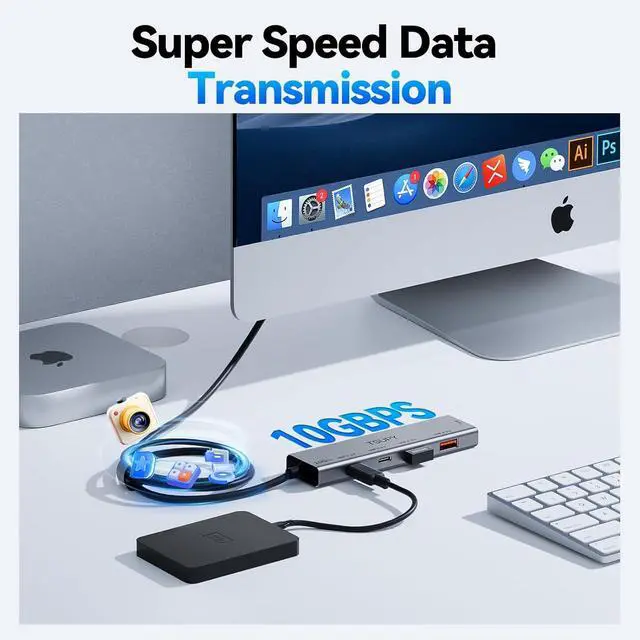 Superspeed Data Transfer Up to 10Gbps: The hub is rated for 10 Gbps connections, you can move or copy large amounts of data/photos/HD movies in seconds, no losses of connection, The usb dongle provide reliable data transfer speed, faster than usb 3.0 hub. smoothly using HDD/SSD at some time