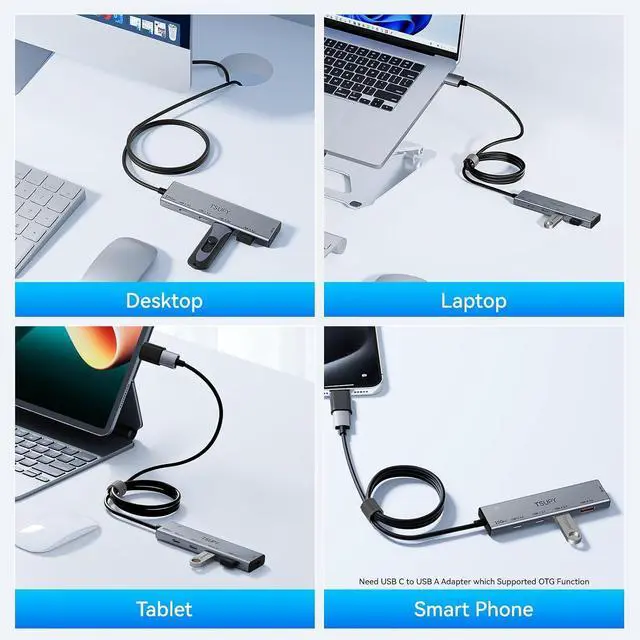 USB A/C Ports: Different from other usb 3.0 hub, you will own two USB-C and two USB Type-A ports. The others only have one or the other. Its new generation of USB Ports, 20 times faster than usb 2.0 in theory. To get full 10gbps speed your computer/usb devices/ usb cable has to support 3.2 G2 too, and 10Gbps shared across all four port
