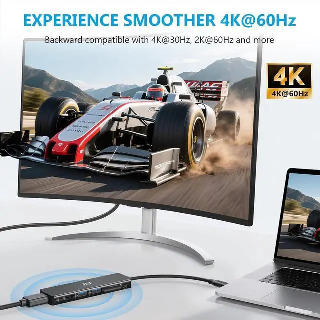 Stunning 4K UHD Video Output: Elevate your viewing experience. Effortlessly mirror or extend your laptop or phone' s screen to a monitor, TV, or projector. Enjoy breathtaking clarity with 4K Ultra HD resolution at a smooth 60Hz, perfect for efficient work presentations, blockbuster movies, sports, and gaming.