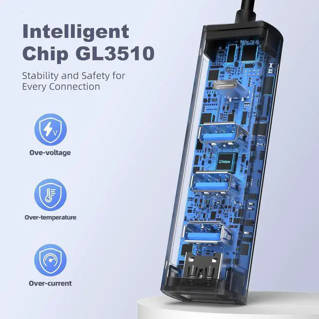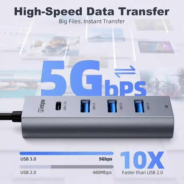 5 Gbps SuperSpeed TransferMove files to and from your laptop at speeds of up to 5 Gbps via the 1 x USB-C and 3 x USB-A data ports. Fast enough to transfer an HD movie in seconds. Meeting all your daily multi-port data transfer needs. Even with multiple devices connected at once, it maintains high-speed performance without compromise.