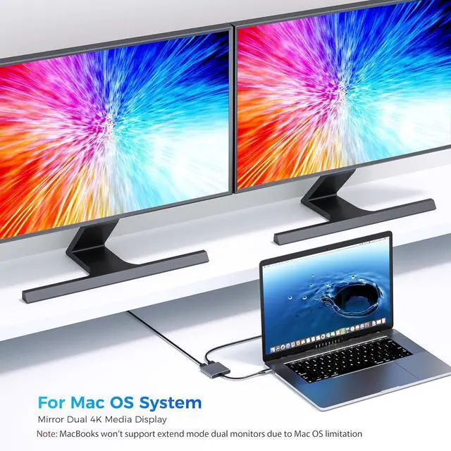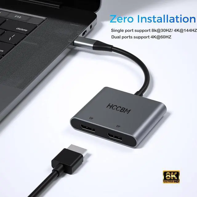 Dual Monitor adapter for laptops (2 IN 1): This dual monitor adapter expend your laptops usb c ports into 2 DP ports 4K@60Hz. Use this usb c dual display port donlge extend your 1 monitors to two external multiple monitors (support different images on your monitors) and this dual display port adapter allows you to do different project on different monitors. Boost your work productivity and efficiency. Support extend mode and mirror mode. Support MST and SST for win laptop. ( ).