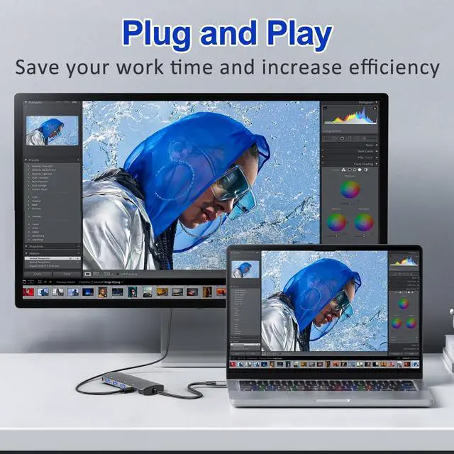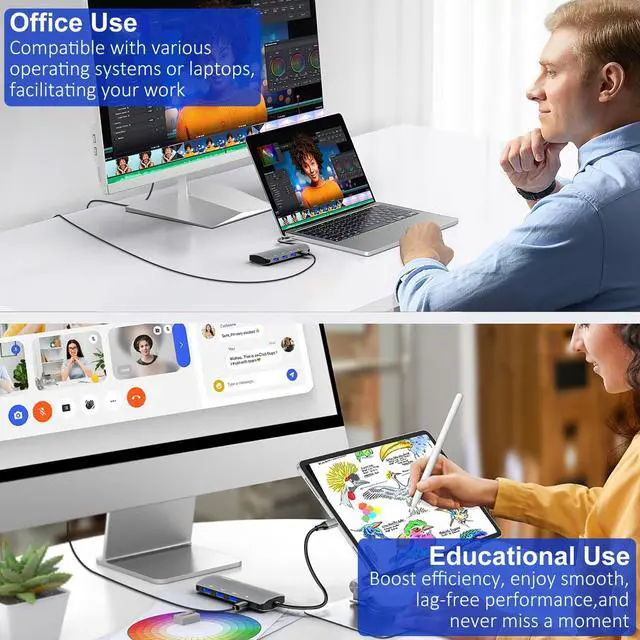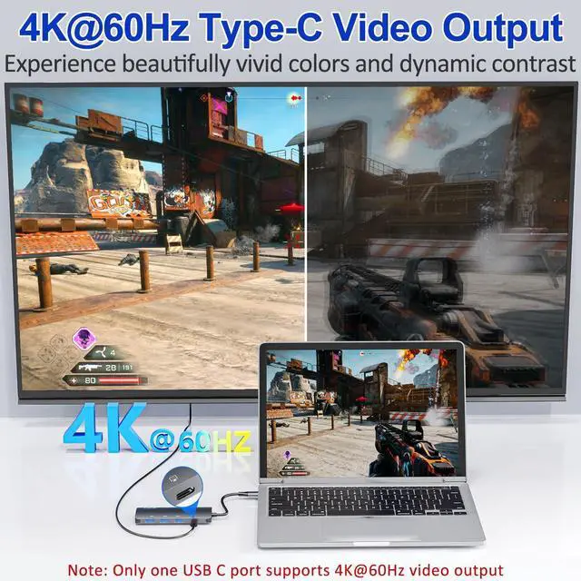 4K@60Hz High-Definition Video Output: Enjoy lifelike clarity on 4K displays at 60Hz with this usb c hub for laptop. Stream videos, animations, and presentations smoothly with zero lag. Stable signal transmission ensures smooth, detailed visuals every time. Enjoy visually stunning movies, high-definition online meetings, or extend your display for incredibly appealing presentations.