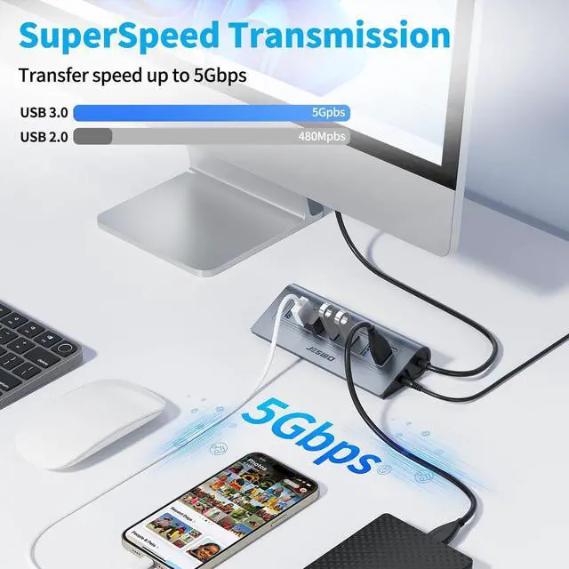 Connectivity: With USB 3.0 technology delivering 5Gbps transfer speeds, this hub makes backing up photos, videos, and projects quick and effortless