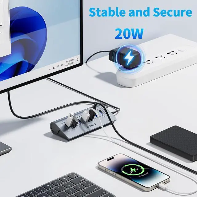 Generous Cable Length for a Tidy Desk: With a 3.3 ft hub cable and a long 4ft power cord, you can easily manage cables and position your hub for a clean, organized, and clutter-free workspace