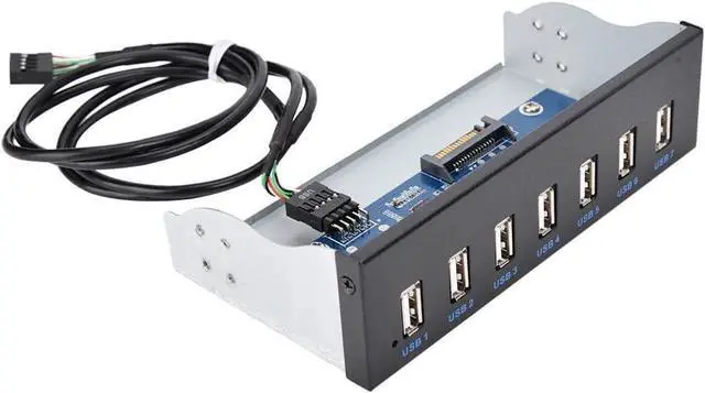7 Port USB Hub Drive Bay: 7 port USB 2.0 hub creates a super high data speed. 7 USB devices can be plugged into the computer box simultaneously. USB 2.0 increases the power of large 4pin, which can provide enough current for 7 high-speed USB interfaces, and solve the problem of insufficient power supply for the front of box. Suitable for 5.25 in computer box. Offers a complete data with no data loss.