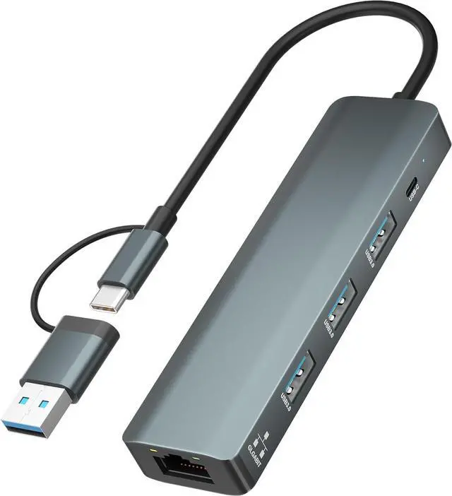 Dual USB-A/C Port Design: This USB ethernet adapter uses a dual connector for both USB C and USB A devices, ensuring broad compatibility with a wide range of devices, such as laptops, tablets, smartphones. Includes a Gigabit Ethernet port and three USB-A 3.0 ports, all usable at the same time for seamless connectivity.