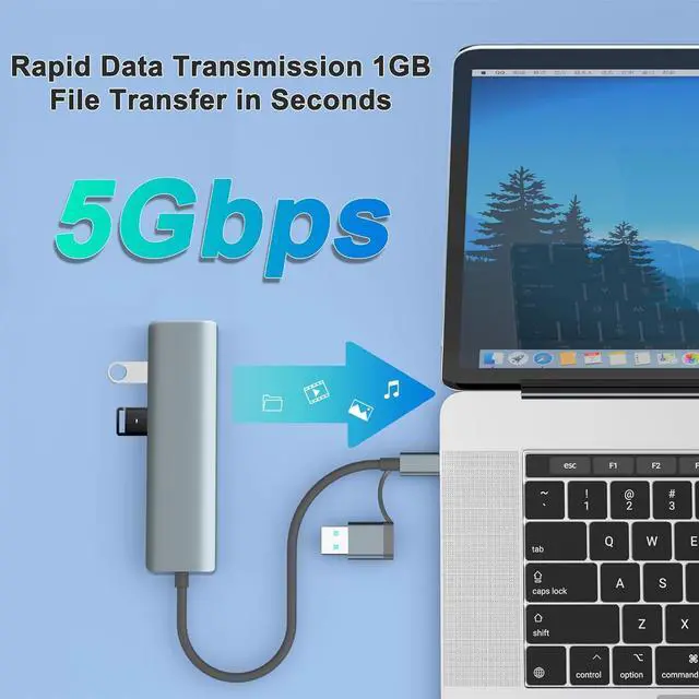 5Gbps Data Transfer: Transfer large files, photos, and videos in seconds with this USB 3.0 hub supporting speeds up to 5Gbps10× faster than USB 2.0. Backward compatible with USB 2.0 and 1.1 devices, this USB splitter expands one port into three for connecting keyboards, mice, and flash drives for everyday use. (Note: The three USB-A 3.0 ports share a total 5Gbps bandwidth. )