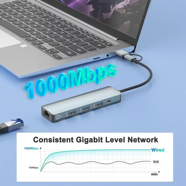 Stable Gigabit Ethernet Adapter: Get fast, wired Internet up to 1000Mbps with this USB C to ethernet adapter. Backward compatible with 10/100Mbps networks for flexible connectivity across various setups. Ideal for streaming, gaming, and large file transfers. (Note: CAT6 & above Ethernet cable is required to reach 1 Gbps)