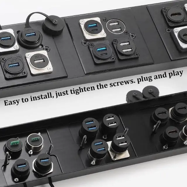 Plug and Play -- USB 3.0 & USB C 3.1 Panel Mount connector, simply open 1 24mm through-hole and 2 3.5 fixing holes on the panel surface and fix them with included stainless steel lock nut, the installation is completed.