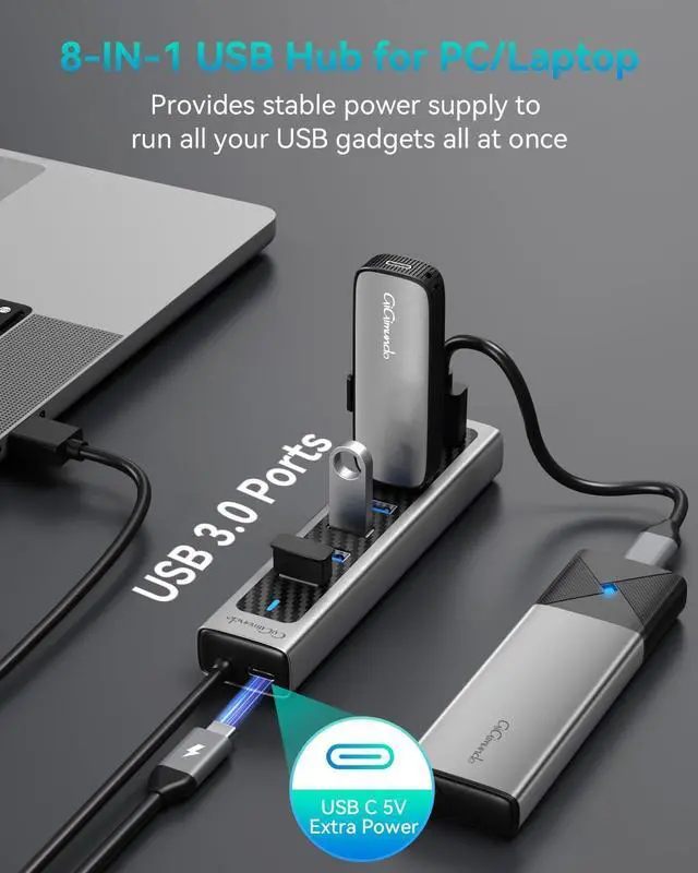 Multi-Device ConnectivityUSB Hub Long Cable at your disposal, connect your keyboard, mouse, printer, external hard drives, and more simultaneously, without sacrificing performance.