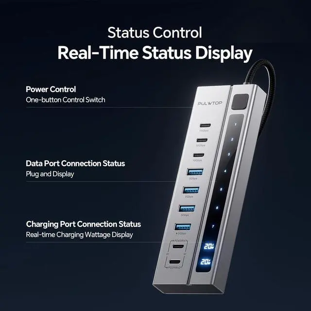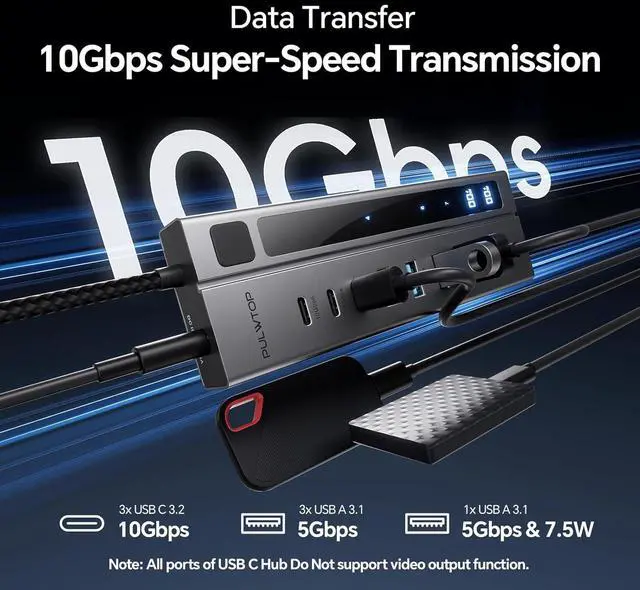 Hybrid Powered Usb C Hub All ports of usb-c hub do not support video output function. This USB C Powered Hub instantly adds 3 USB-C 3.2 10Gbps ports (Data ONLY), 4 USB-A 3.0 5Gbps port (Data ONLY), and 2 USB-C PD Charging Ports (Charge ONLY) extensions to your laptop, desktop, gaming host and more. Plug it to play, no driver required, easy to solve the problem of insufficient ports, allowing you to connect multiple USB devices at the same time. Please NOTE that this powered usb c hub does not support providing POWER to your laptop.