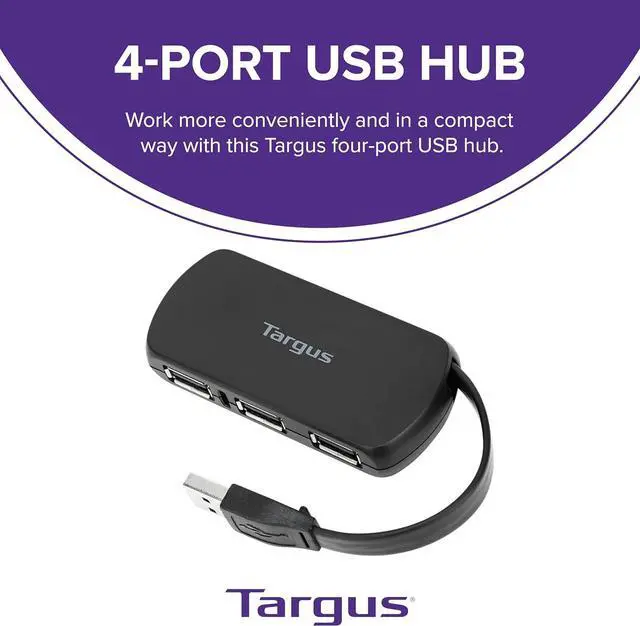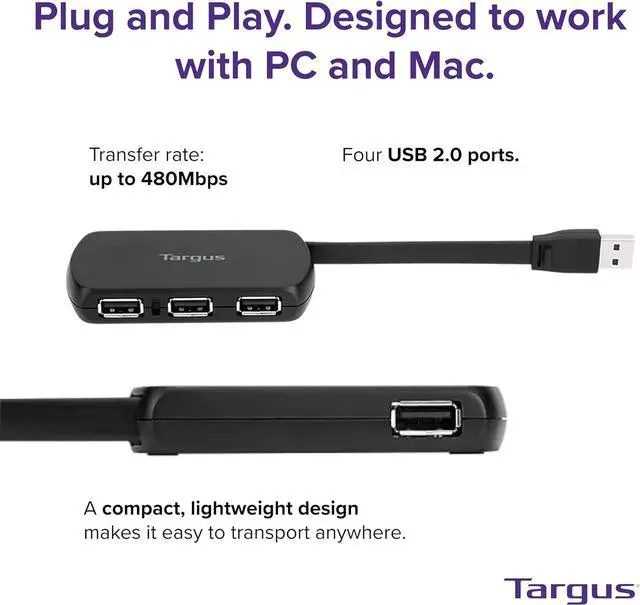 Increase Connectivity: The Targus 4-Port USB 2.0 Hub is a convenient and compact way to use more USB ports than your computer has available. Designed to work with both PC and Mac computers and laptops