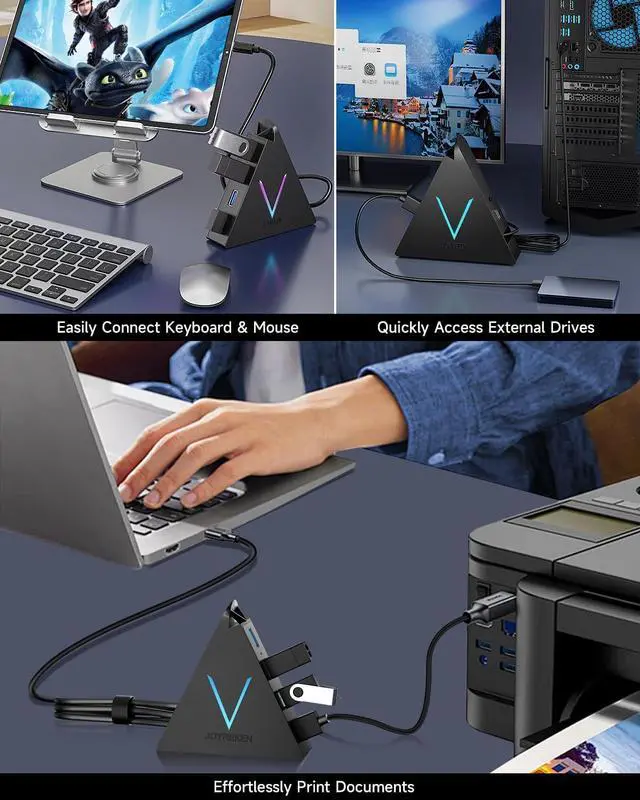 What You Get: JoyReken FlyingVHUB USB C to 4-Port USB 3.0 Hub with Built-in 2ft USB 3.0 cable ( Black ), user manual, our worry-free 12-month warranty, and friendly customer service.