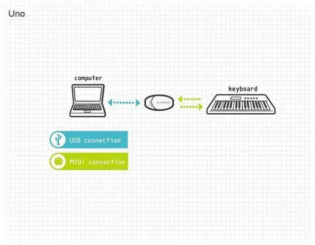 Built-in USB cable and MIDI extension cables