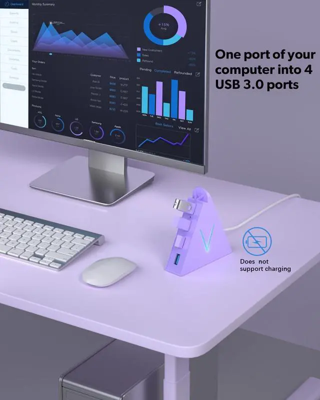 Great Gift ChoiceThis high-performance USB hub light purple is the perfect blend of practicality and style, making it an ideal gift for birthdays, Thanksgiving, Christmas, or any special occasion. Whether for a coworker, partner, parent, or child, it enhances their electronic devices while bringing convenience and efficiency to their daily lives. As one of the must-have PC setup accessories, its not just a functional tool, but a fashionable addition to any workspace!